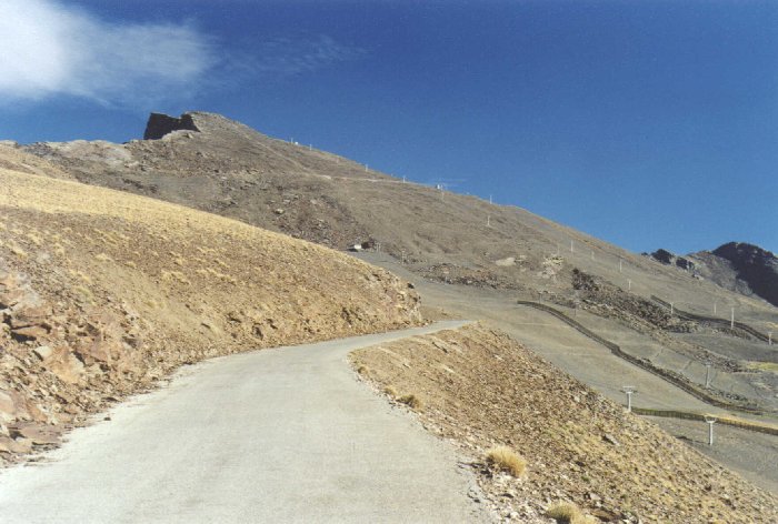 Die Straße, die bis zum Gipfel führt, aber für Autos gesperrt war.